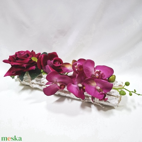 Színes virágos kéreg fahasáb, dekoráció, asztaldísz, ablakdísz