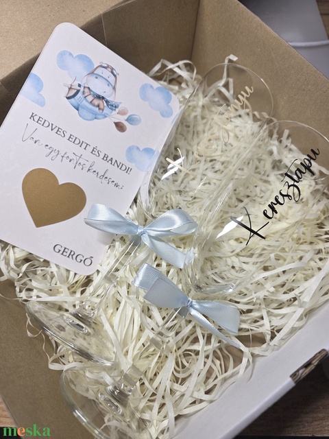 Keresztszülő felkérő szett - pezsgőspohárral, kaparós sorsjeggyel