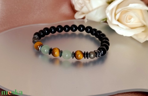 - Anyag/Összetevő gumis damil, tigrisszem, aventurin, pirit, hematit, ónix