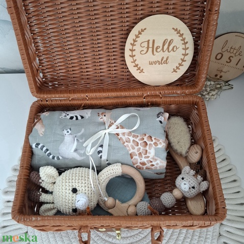 Zsiráfos babalátogató ajándékcsomag bőröndben