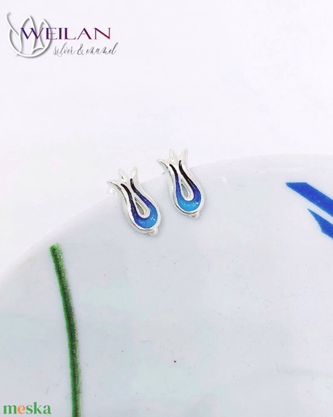 Pántlika ezüst tűzzománc stiftes fülbevaló, türkizkék