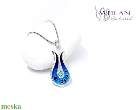 Hej'tulipán - Pántlika ezüst rekeszzománc medál cirkóniával, türkizkék zománcozással