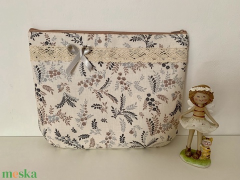 - Anyaga: pamutvászon, fémkellékek, cipzár, csipke, szaténszalag, vízálló vászon