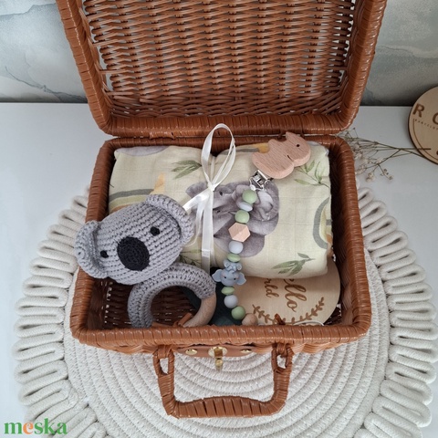 Elefántos-koalás babalátogató ajándékcsomag bőröndben