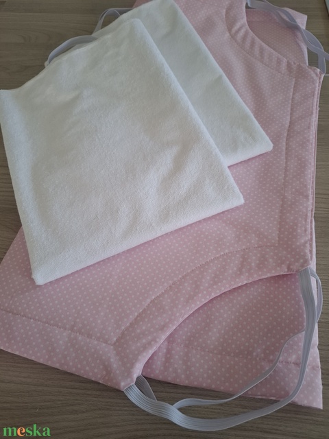 - Anyaga: 100% pamut textil, 100% pamut cérna, vatelin bélés, gumi, vízhatlan textil