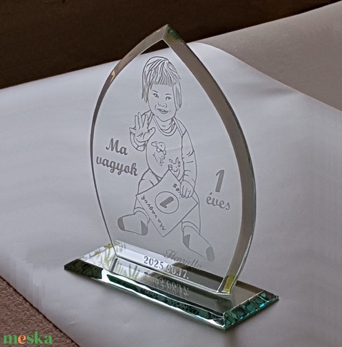 Kézi csiszolású üveg emlékplakett, mely örökre szép emlék marad!