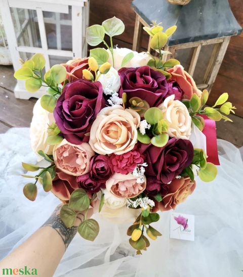 Őszi csokor, Menyasszonyi csokor, örökcsokor, selyemvirág csokor kitűzővel