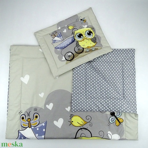 Egyedi 2 részes Ovis ágynemű - bagoly mintás ovis takaró és lapos párna szett