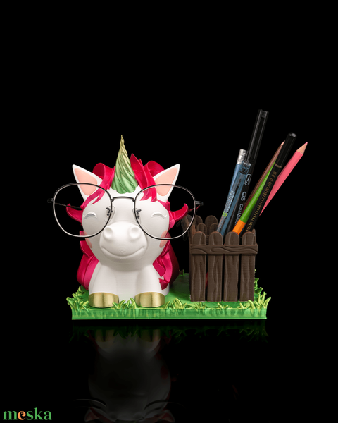 Unikornisos asztali dekor – szemüveg- és tolltartó egyben