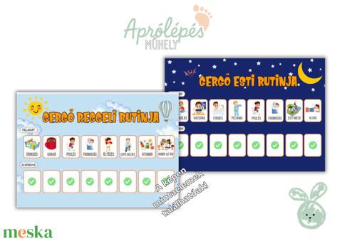 Gyerek rutintábla reggeli és esti teendőkhöz – személyre szabott, cserélhető elemekkel