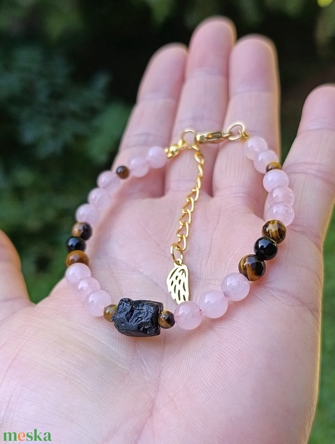 Nyers turmalin, rózsakvarc, tigrisszem és ónix ásványkarkötő empatáknak