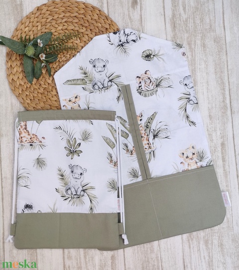 Óvodai Szett 2 db-os - Ruhazsák és tornazsák "kölyök vadállatos"- zsálya