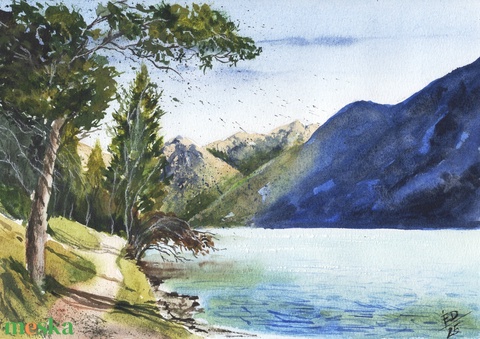 Megérkeztél - nyári hangulatú akvarell tájkép, nyomat természetkedvelőknek, A4 - "Kék-zöld álmok" sorozat