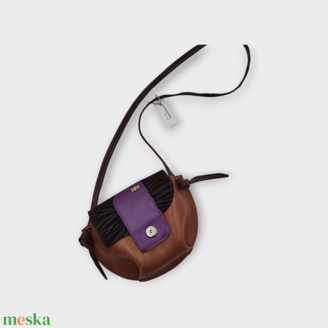 Bőr táskáimon igyekszem kerülni a fém kellékeket, így a vállpánt rögzítése egy csomó mely design elemként is funkcionál.