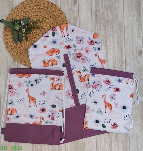 PRÉMIUM Óvodai Szett 3 db-os - Ruhazsák, tornazsák és tisztasági zsák "Őzikés"- mályva