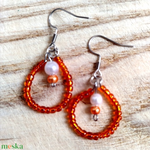 Narancs fehér Gyöngyös kézműves fülbevaló