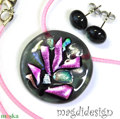 Hulló virágszirmok szürkén üvegékszer szett nyaklánc stiftes fülbevaló 1