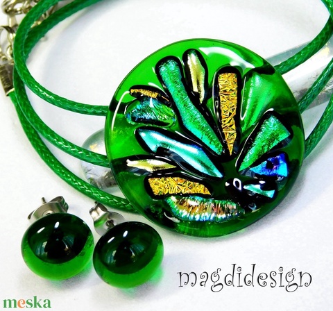 Hulló virágszirmok zöldben üvegékszer szett nyaklánc stiftes fülbevaló 1