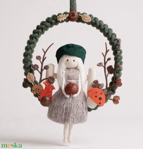 - Anyaga: fém karika, fa golyó, termés, makramé fonal, filc dekoráció