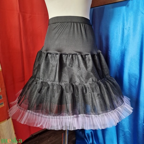 ESKÜVŐ ASZ86 – Fekete rugalmas felső részű 4+1 rétegű fodros alsószoknya lila fodrral gót stílusban
