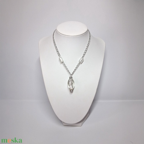 Fehér csíkos üveggyöngy nemesacél nyaklánc