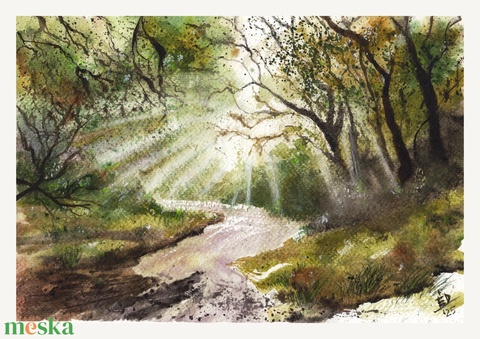 Erdő mélyén - akvarell nyomat, A4-es méretben - meleg hangulatú erdő, természetkedvelőknek