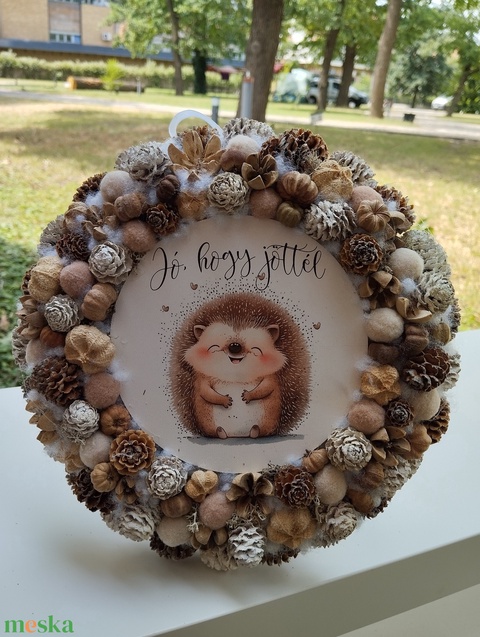 Sünis natúr színvilágú őszi ajtódísz, 24 cm