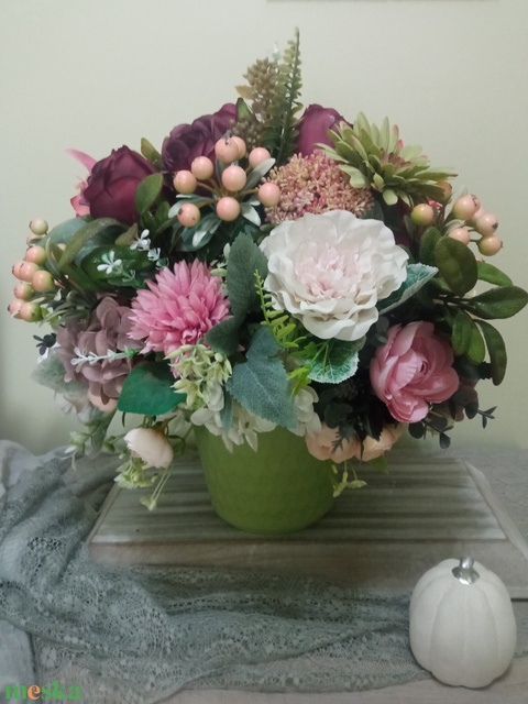 - Anyaga: selyemvirág, kaspó, tűzőhab