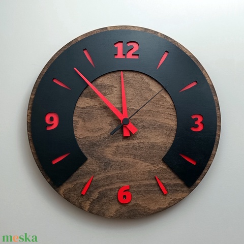 Modern falióra – fából készült, fekete design piros számokkal, 28 cm