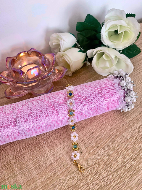 "Elina" kék kristályos fehér virágos gyöngykarkötő