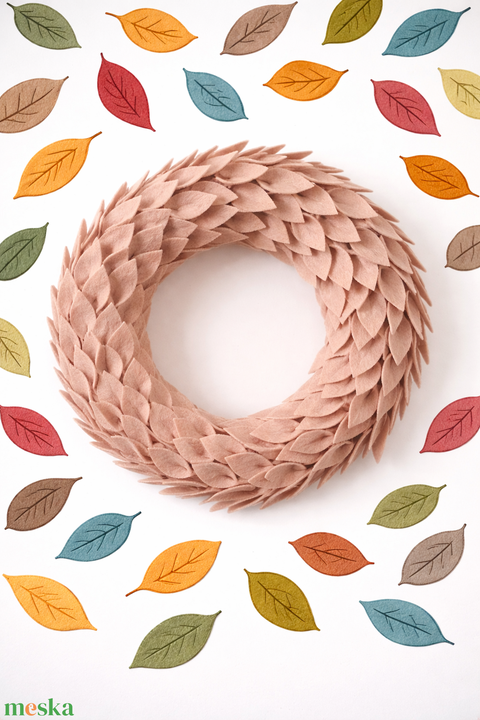 Mokka színű filc koszorú - elegáns minimalista otthon dekoráció - natúr ajtódísz - cappuccino koszorú