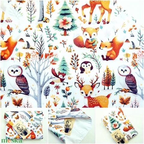 Újraszalvéta őzikés, erdei állatos környezettudatos vízhatlan csomagoló - annetextil