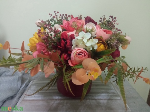 - Anyaga: selyemvirág, kaspó, tűzőhab