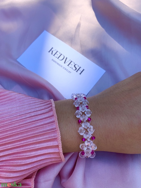 Hercegnős karkötő rózsaszín és kristály gyöngyökkel