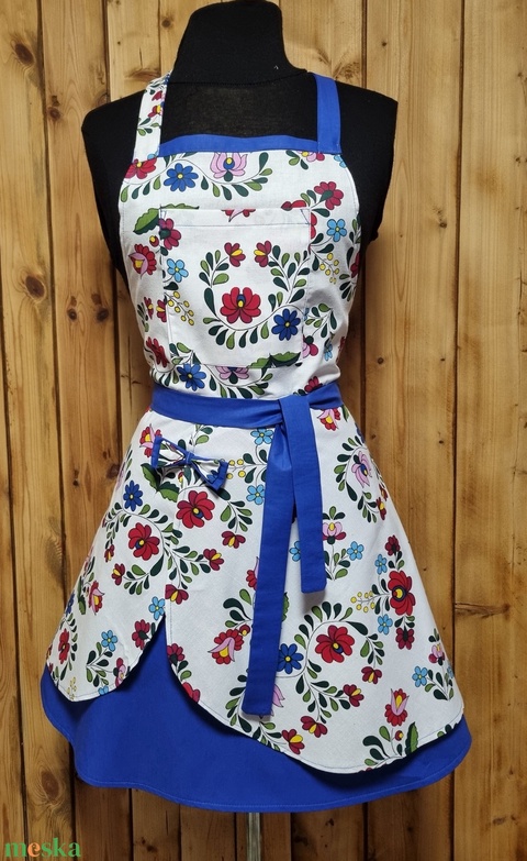 KÉK alapon,dupla loknis kötény