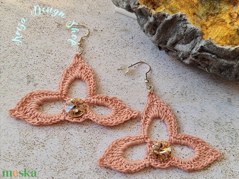 Kézműves horgolt csipke fülbevaló Swarowskival ("Orchidea szirom")