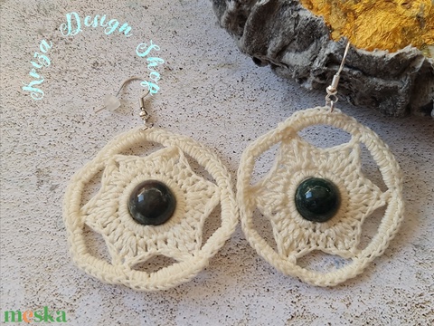 Kézműves horgolt csipke fülbevaló moha acháttal - "Csenge"