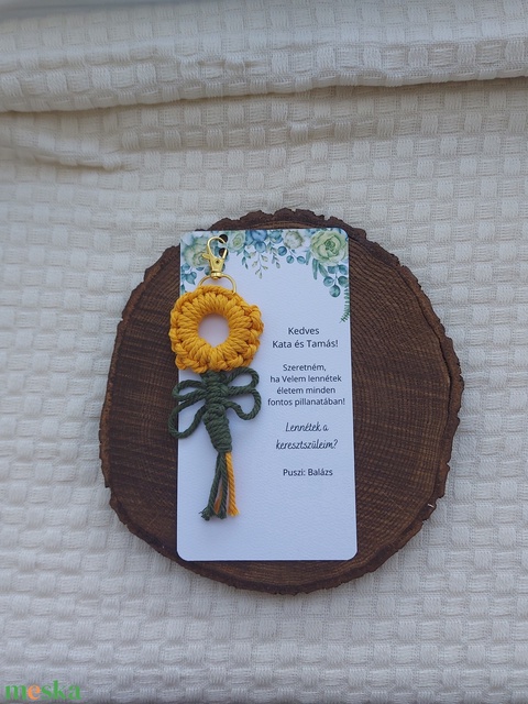 Keresztszülő felkérő - napraforgós kulcstartó makramé