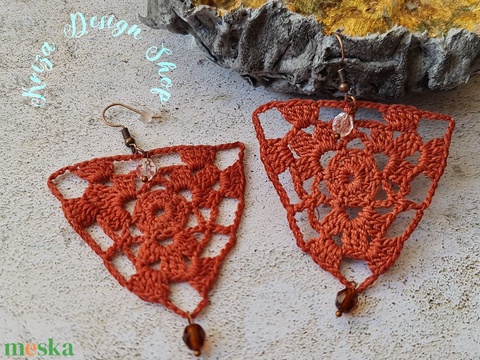 Kézműves horgolt csipke fülbevaló gyönggyel (Enikő - Marsala színek)