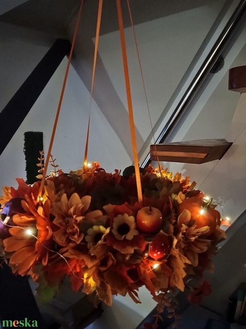 Őszi naplemente koszorú – világító dísz hangulatvilágítással, 40 cm
