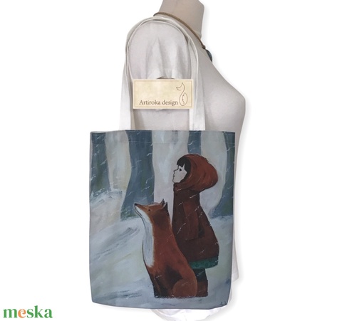 Kislány rókával mintás válltáska, shopper