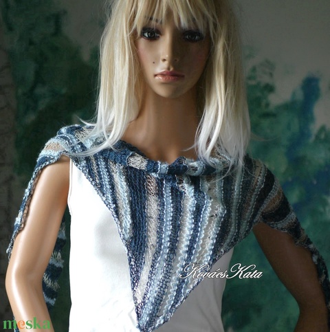 ITO SELYEMKENDŐ - exkluzív kézzel kötött 100% selyem bourette kendő, sál / pacific