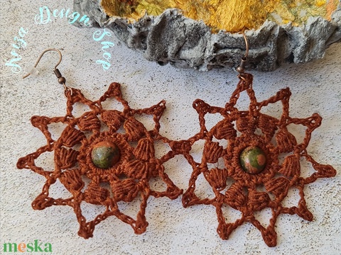 - Anyaga: nikkelmentes fém fülbevaló alap, pamut horgolt csipke