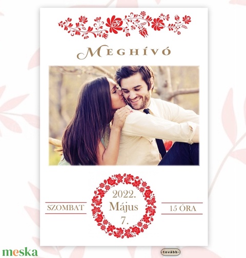Digitális esküvői meghívó fényképpel és magyaros motívummal