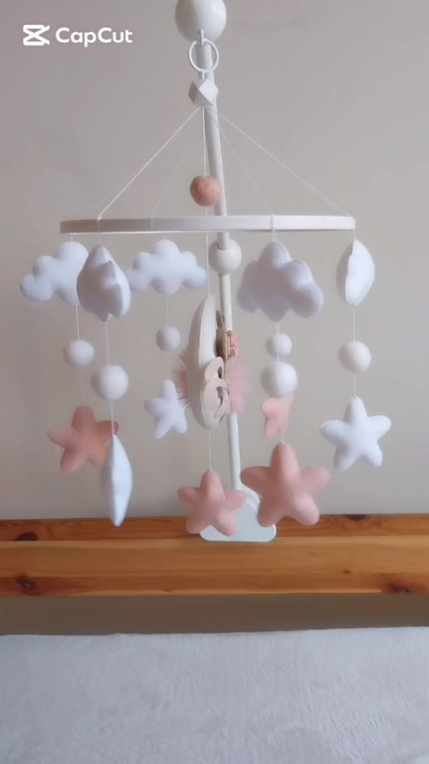 "Jó éjszakát Kicsim!" kislányos kiságyforgó pasztel színekkel, festett fehér bambusz karikával