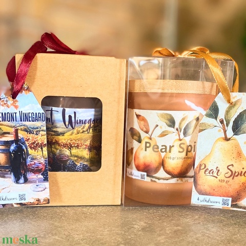 - Anyaga: szója viasz, fa kanóc, üveg tégely tetővel