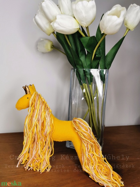 ARANYSZŐRŰ PARIPA KORONÁVAL EGYEDI CSILLAGMAG-TÜNDÉRLOVACSKA TERMÉSZETES ANYAGOK GYAPJÚFILC GYAPJÚ 100 %-OS PAMUTFONAL
