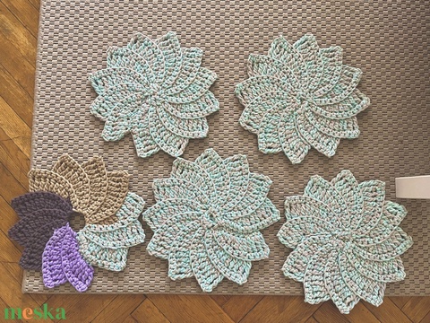 Horgolt 4 db-os alátét és mécses tartó ajándékba