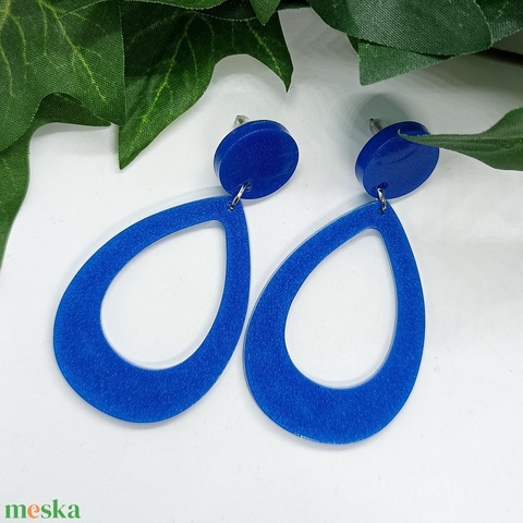 Csepp alakú kék csillogó nagy beszúrós műgyanta fülbevaló