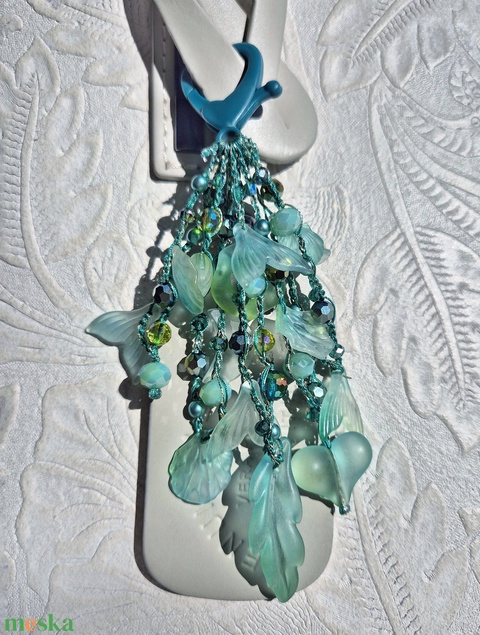 Türkiz arany gyöngy táskaékszer, táskadísz.